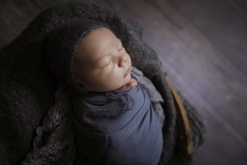 Newborn studio sessions are generally scheduled during the first 6 - 12 days after birth, babies tend to love being wrapped, love to be curled up & sleep a little more deeply. Once they approach the two week mark, they begin to lose the "newborn" look, they occasionally begin to develop baby acne, are awake for longer periods of time & tend to like to cluster feed. In home lifestyle newborn sessions are a perfect option for a older newborn baby.