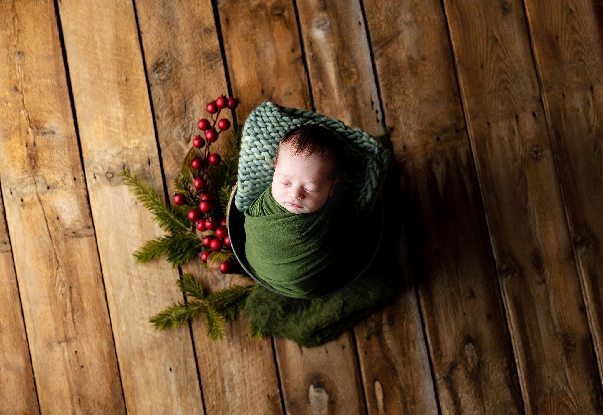 Since Henry was born right around Christmas, we just had to add in some holiday feel to the session!! These red apple props are one of my favourite, they are so versatile & the addition of fresh pine had the studio smells wonderful!!
