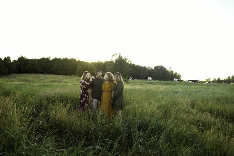 Since her children are into their teens, a sunset session was the perfect time for them!! We meet at our home, where the location options are endless!! The heifer pasture was the location of choice & to have different looks all in one location was perfect!!